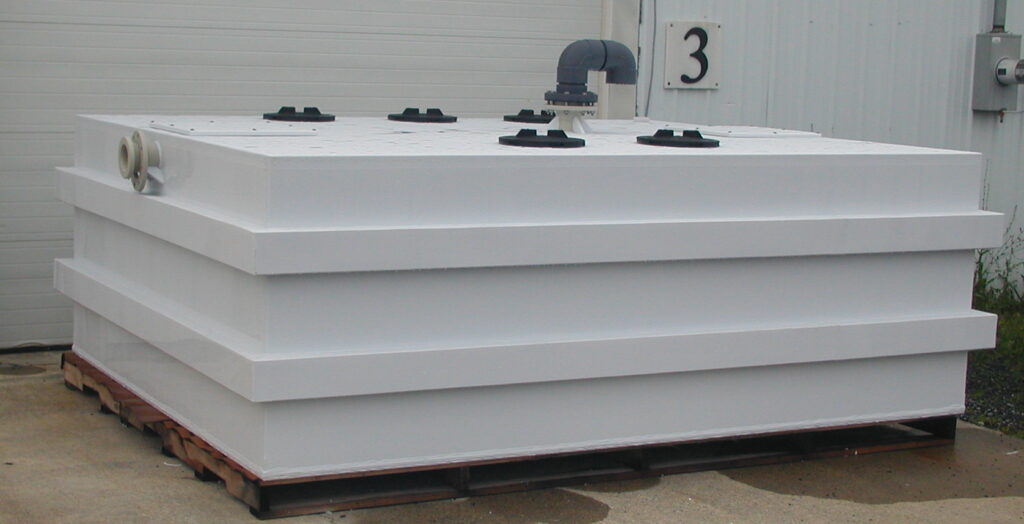 Our custom fabricated tanks are used for a wide range of applications; water and chemical storage, water treatment systems, pH adjustment systems, pump stations, plastic manholes, etc… We can design and fabricate any style of tank you might need to meet your requirements. The tanks can be constructed out of polyethylene, polypropylene, PVC, CPVC, PVDF and stainless steel with many different styles of fittings, internal or external supports and cover.