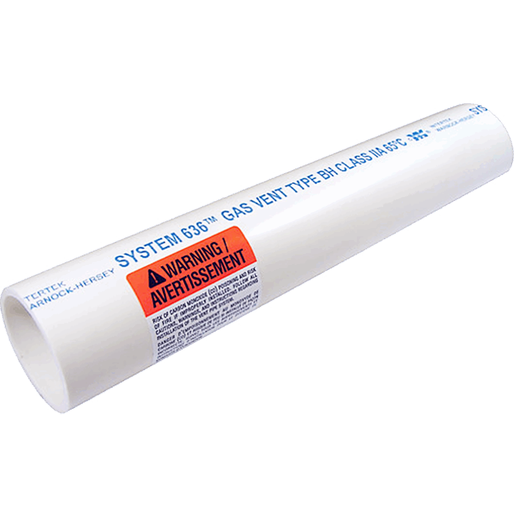System 636® CPVC Flue Gas Venting System is third party certified and listed to ULC S636 in accordance with the CSA B149.1 Natural Gas and Propane Installation Code. System 636 CPVC is intended for negative or positive pressure venting and is classified as a “Type BH Class II B 90°C” flue gas vent. System 636 PVC Pipe is grey in colour and is made to SCH 40 dimensions. Each length of vent pipe is uniquely marked with a dual print line and each length includes a special orange warning label in accordance with ULC S636. Every CPVC vent fitting, also grey in colour, has a warning label indicating its vent class and maximum temperature rating. System 636 CPVC has specially certified Cements and Primers which are an integral part of the “system certification” of the product line. Substitutions shall not be made for any component of a System 636 CPVC system, this includes pipe, fittings, cements and primers. Substitution of a component will void product warranty and ULC S636 system certification. System 636 venting shall be installed in accordance with the certified System 636 Installation Guide, and in accordance with the appliance manufacturer’s installation instructions. In the event of conflicting installation instructions between the appliance manufacturer, the System 636 installation guide and/or Code requirements, the most restrictive requirement shall apply.